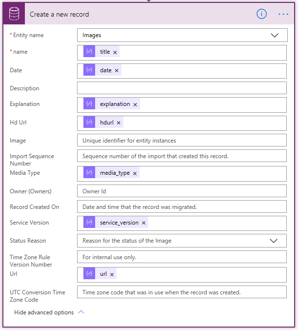 2 thoughts on “Creating CDS records from an open API – Nasa’s Astronomy Picture of the Day – using Microsoft Flow”