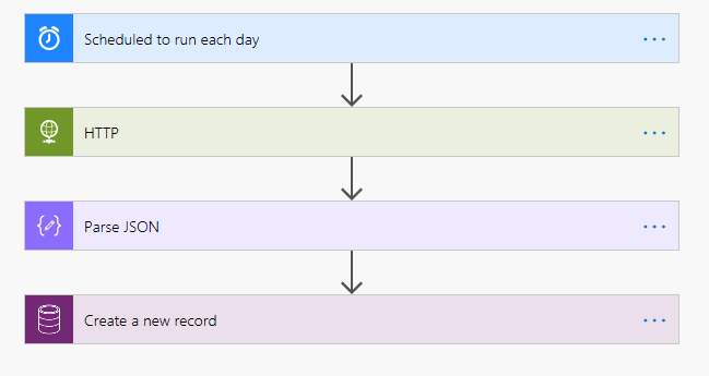 Please note that this is just an example of how you can get info from an open API into the CDS with the use of a Microsoft Flow which has been set to run on a schedule. In many cases there is no need to store data in the CDS, e.g. you might as well have the data displayed in a Canvas App or you might want to consider to use Virtual Entities.