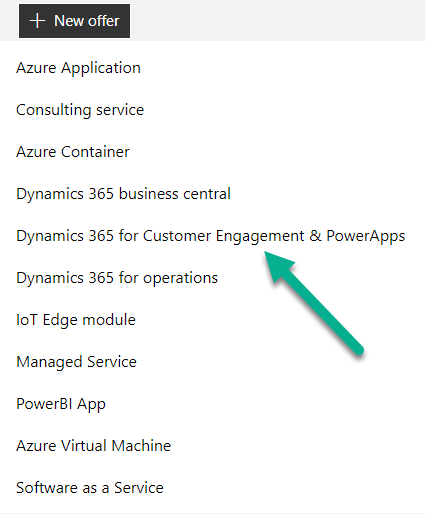 As I understand, “Customer Engagement” is associated with the on-premises version only nowadays, if it refers to on-premises or not in the Commercial Marketplace, who knows, but this is the offer type you should choose when building custom Power Apps or when building on top of the First-Party Apps, e.g. when Dynamics Sales parts are included. With other words – building something on top of Dynamics “former CRM”. A bit confusing nowadays what we call the “former CRM parts”.