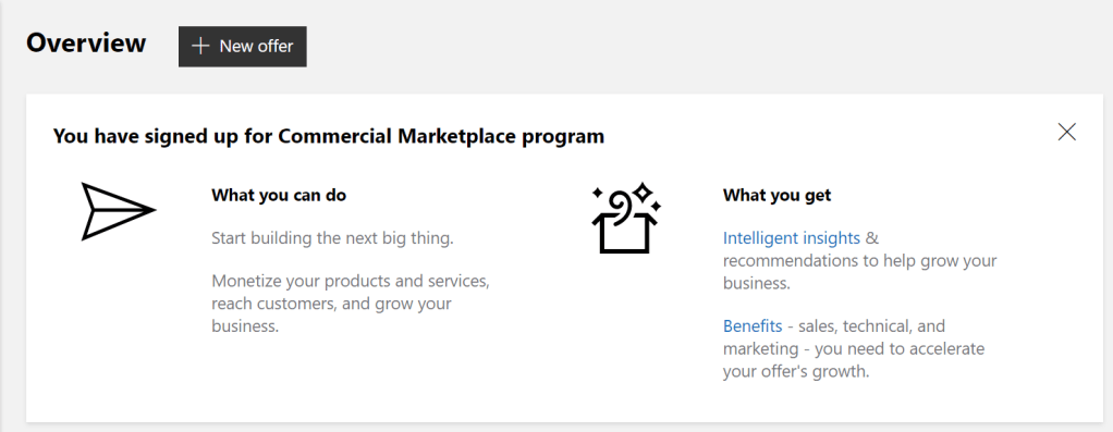 Let us take a look at the steps needed to get started! The offer registration part starts in Microsoft Partner Center. In order to get started you will need to 1. Setup your Microsoft Partner Center Account. If you are not already a member of the Microsoft Partner Center, you can become one by enrolling here. Once your account has been set up, you will handle the publishing part under Commercial Marketplace.
