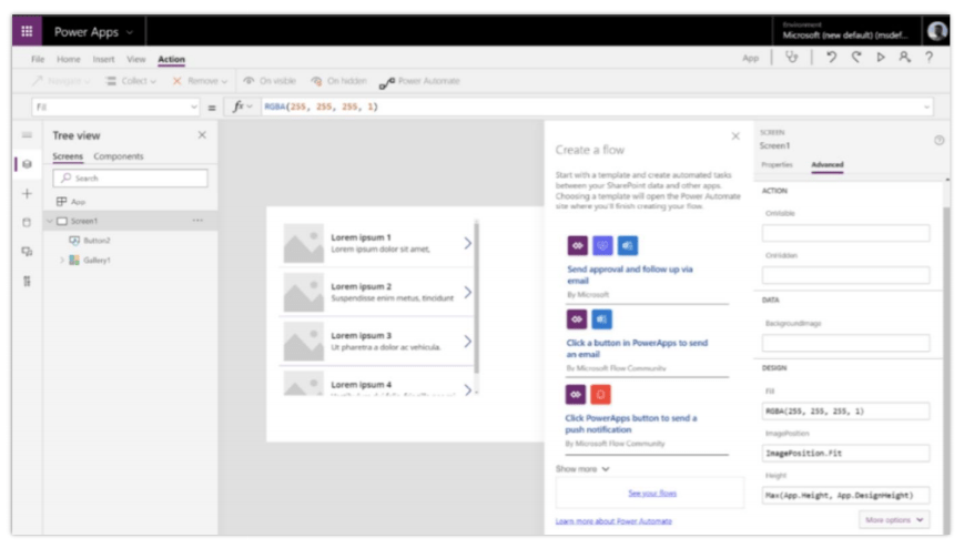 Power Apps combines the flexibility of a blank canvas that can connect to any data source with the power of rich forms, views, and dashboards modeled over data in Common Data Service.
