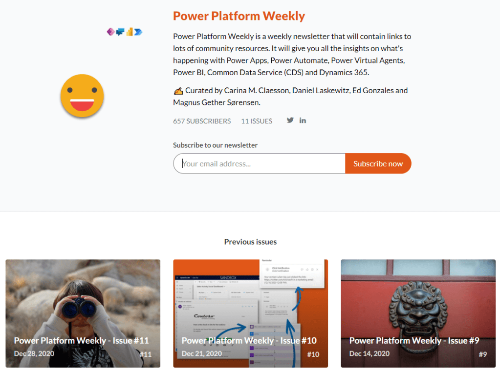 The year of 2020 was the year which brought several new collaborations. Me and Office Apps & Services MVP Amanda Sterner have had chats and created articles together, the first one can be found here. Another collaboration that I am happy about is one that came together from one week to another. When the last issue of Dynamics Weekly was published, a new opportunity came up and a new collaboration say its first daylight – Power Platform Weekly. I am really looking forward to continuing that journey together with the others. Community is about sharing and uplifting others. There is so much helpful content produced each week and it feels really great to be able to highlight the content and the people behind it.
