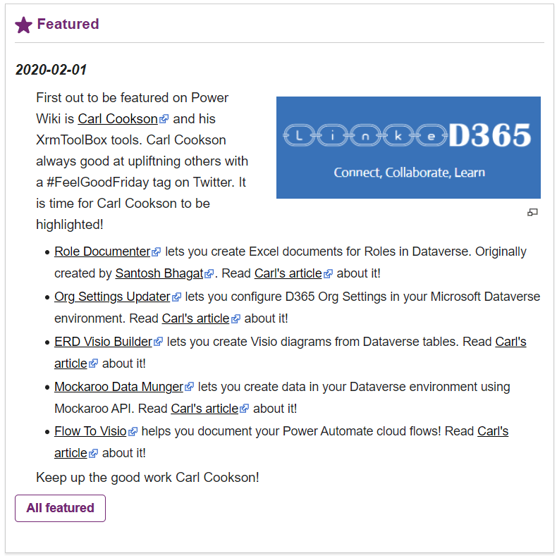 Today Power Wiki was launched. 🚀 What is Power Wiki? Power Wiki combines sources for Power Platform related content from Microsoft and from the Community. Search for a topic, get a quick overview and find out where you can go to get more inspiration and find the answers you need. Use the categories in order to find content relevant for you. Point your Power Platform newbie friends to the Glossary. Go to the xRM page and get nostalgic. ✨