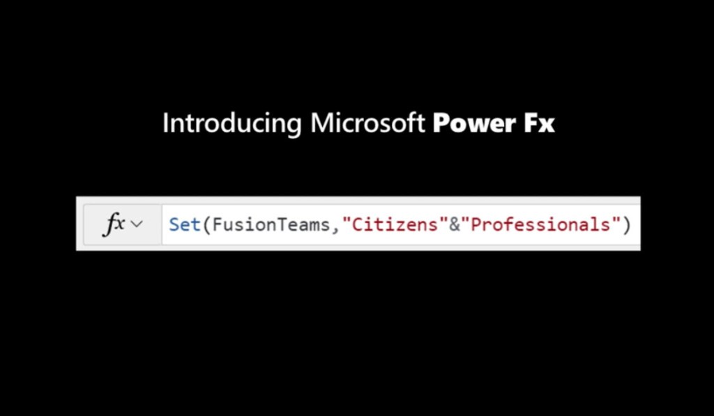 Fusion Team is the terminology Microsoft uses to describe a team working together and the team consists of both professional developers and citizen developers. Read my blog posts about Microsoft Ignite both from last year in September and this year in March. Fusion Teams was mentioned at both events. In March this year Power Fx was introduced and it looked like below.