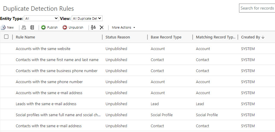 - You can have multiple detection rules for the same table, but only have a maximum of five duplicate detection rules published per table at the same time.