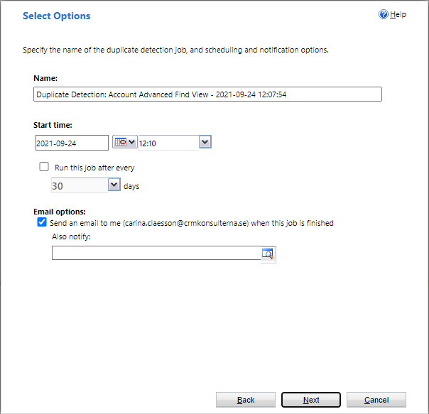 Checking for duplicates with one set of rules and running a job like this might be good in the beginning of a project. But later on you might need other rules. Read omre about setting up jobs here: Duplicate Detection Jobs. Moving on to setting up the rules.
