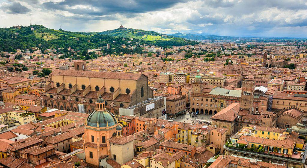 There is a river in the middle in Florence and the city is following the river. Bologna is a center, a circle. In center of the circle you will find most things of the medieval times. Was a very big city during medieval times. Many churches and towers