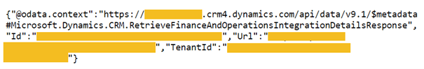 https://{yourOwnPartOfURL}.crm4.dynamics.com/api/data/v9.1/RetrieveFinanceAndOperationsIntegrationDetails