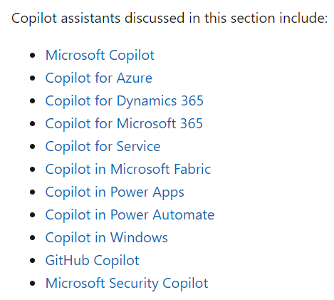 I like this. Now the reader gets a better understanding of what is Copilot. There is also a list of samples of what’s called Copilot assistants. Which seems like a mix of built in/embedded copilots and solution accelerators.